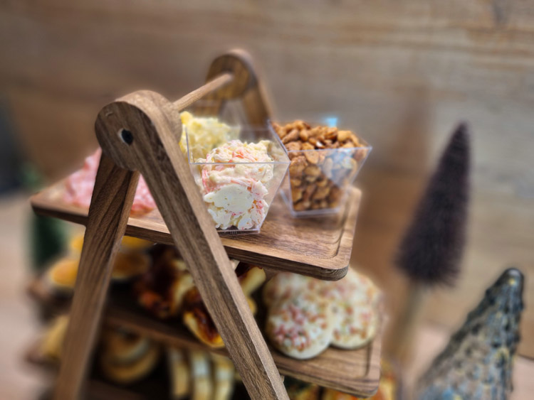 Een superleuke, goed gevulde etagère om heerlijk van te genieten. Bijvoorbeeld bij de borrel of als aanvulling op je kerstbrunch. De etagère is niet bij de prijs inbegrepen je kunt deze er los bijbestellen.